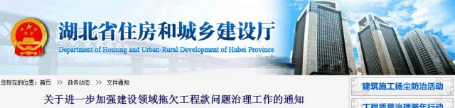日前,湖北省住房和城乡建设厅出台《关于进一步加强建设领域拖欠工程款问题治理工作的通知》(鄂建设文〔2017〕80号),全面部署落实建设领域拖欠工程款问题,从源头上解决工程建设领域存在多年的顽疾。通知中提出:
